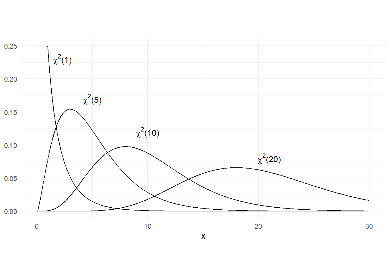 p1 (b) For \(p = 0.01, 0.05, 0.10\), plot the lines \(c\) against \(v\) such that \(\Pr(X > c) = p\) when \(X\sim \chi^2(v)\) for \(v=10, 20, \dots, 200\).