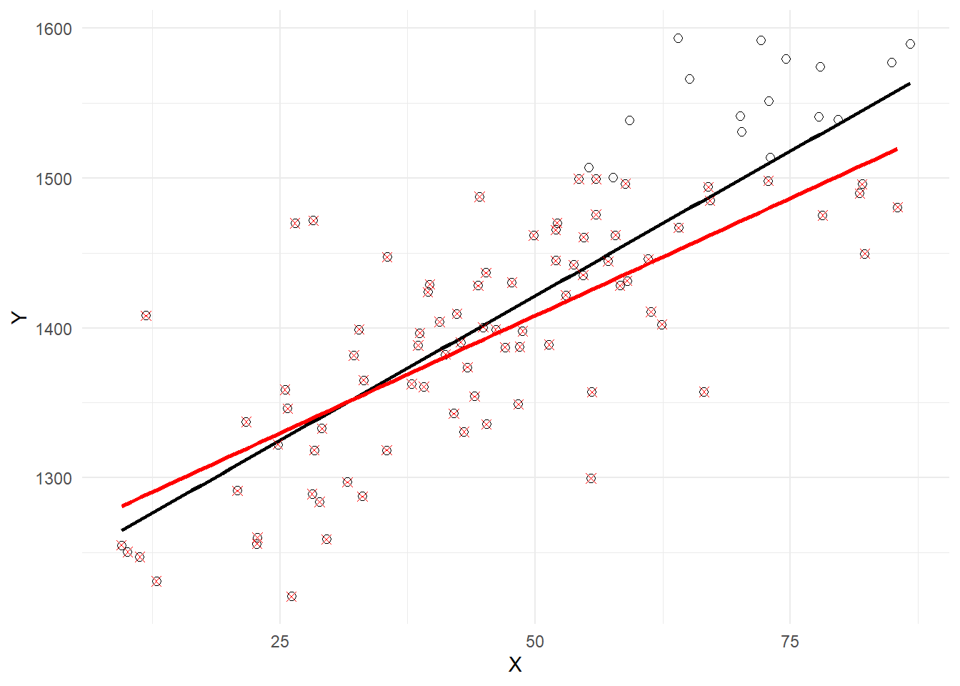 geom_smooth(data=df_measerr, aes(x=Xstar, y=Y), method="lm", col='black',